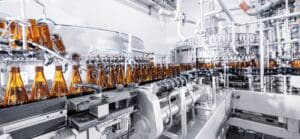 Process,Pasteurization,Brown,Glasses,Bottles,With,Beer,,Moving,On,Conveyor.
